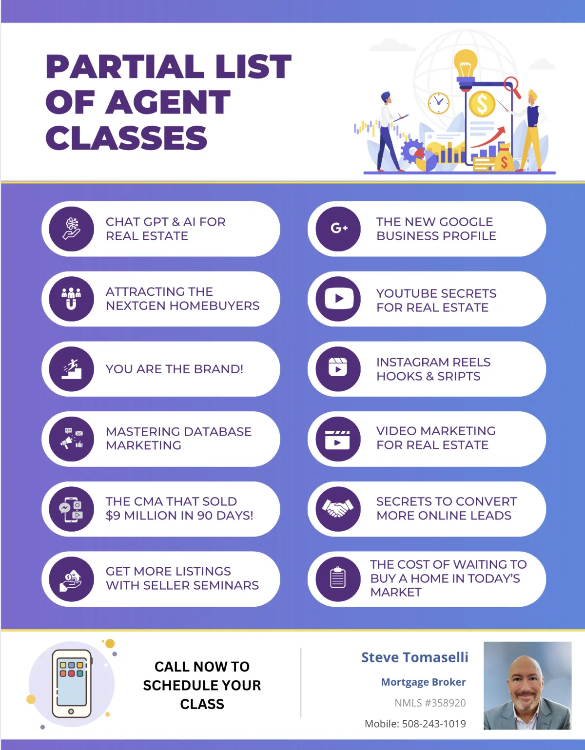 Contact me for 1:1 coaching on coaching on Facebook, Instagram, YouTube, LinkedIn, or my most popular workshop: Leveraging AI to Grow Your Real Estate Business.